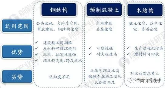 鋼結(jié)構(gòu)在裝配式建筑中優(yōu)勢(shì)明顯 按照裝配式建筑結(jié)構(gòu)體系劃分,可分為預(yù)制混凝土結(jié)構(gòu)、鋼結(jié)構(gòu)和木結(jié)構(gòu),與預(yù)制混凝土和木結(jié)構(gòu)相比,鋼結(jié)構(gòu)在諸多方面具備比較優(yōu)勢(shì),未來(lái)有望成為裝配式建筑的主流結(jié)構(gòu)。